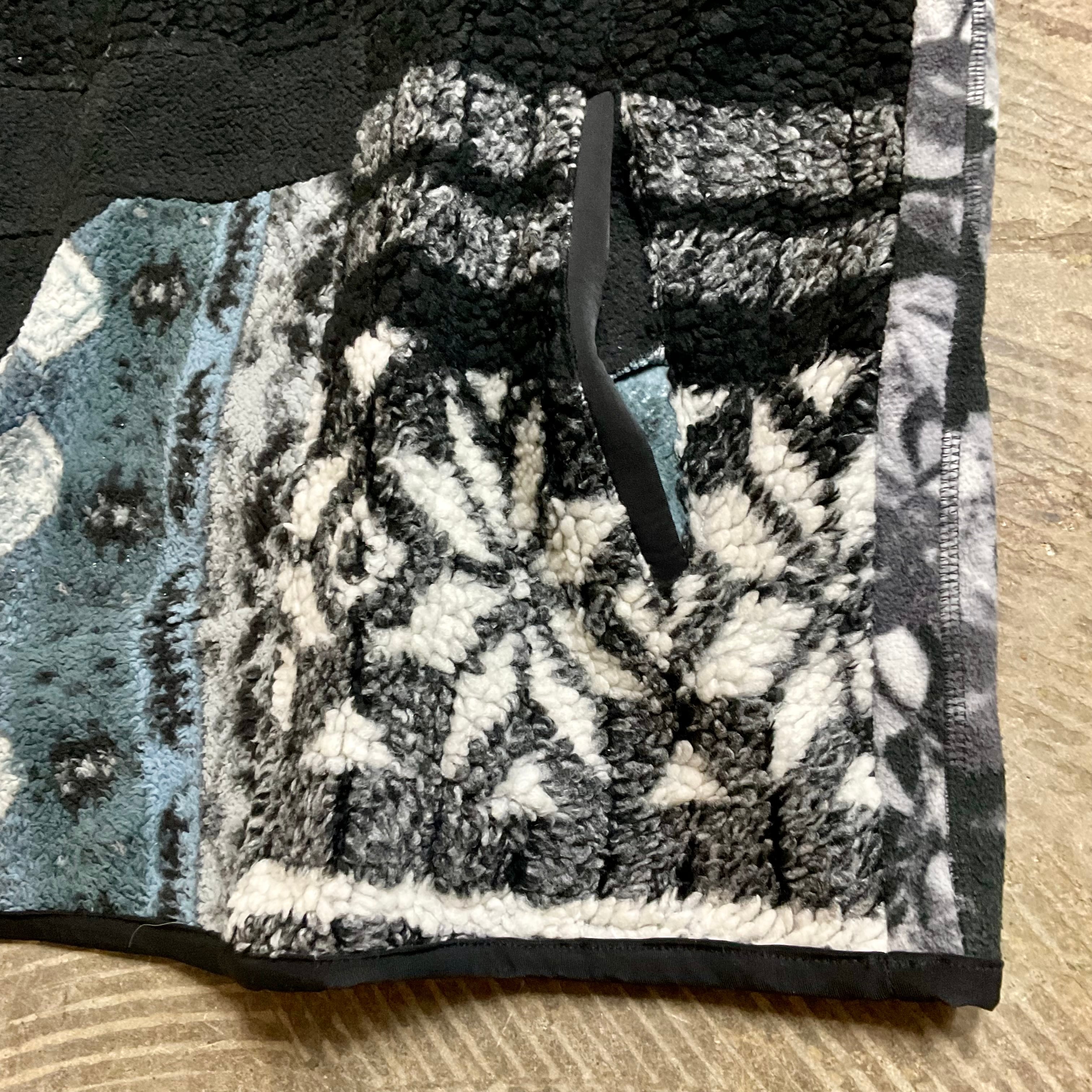 フリース生地のピースをパッチワークした、