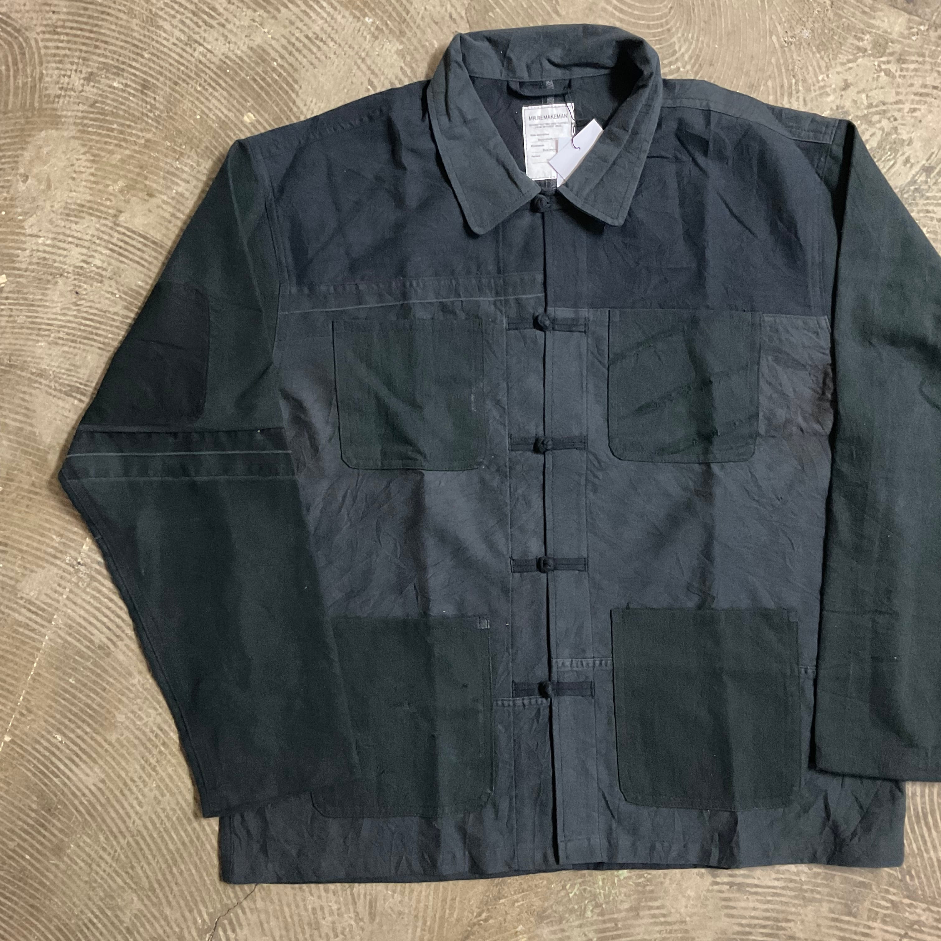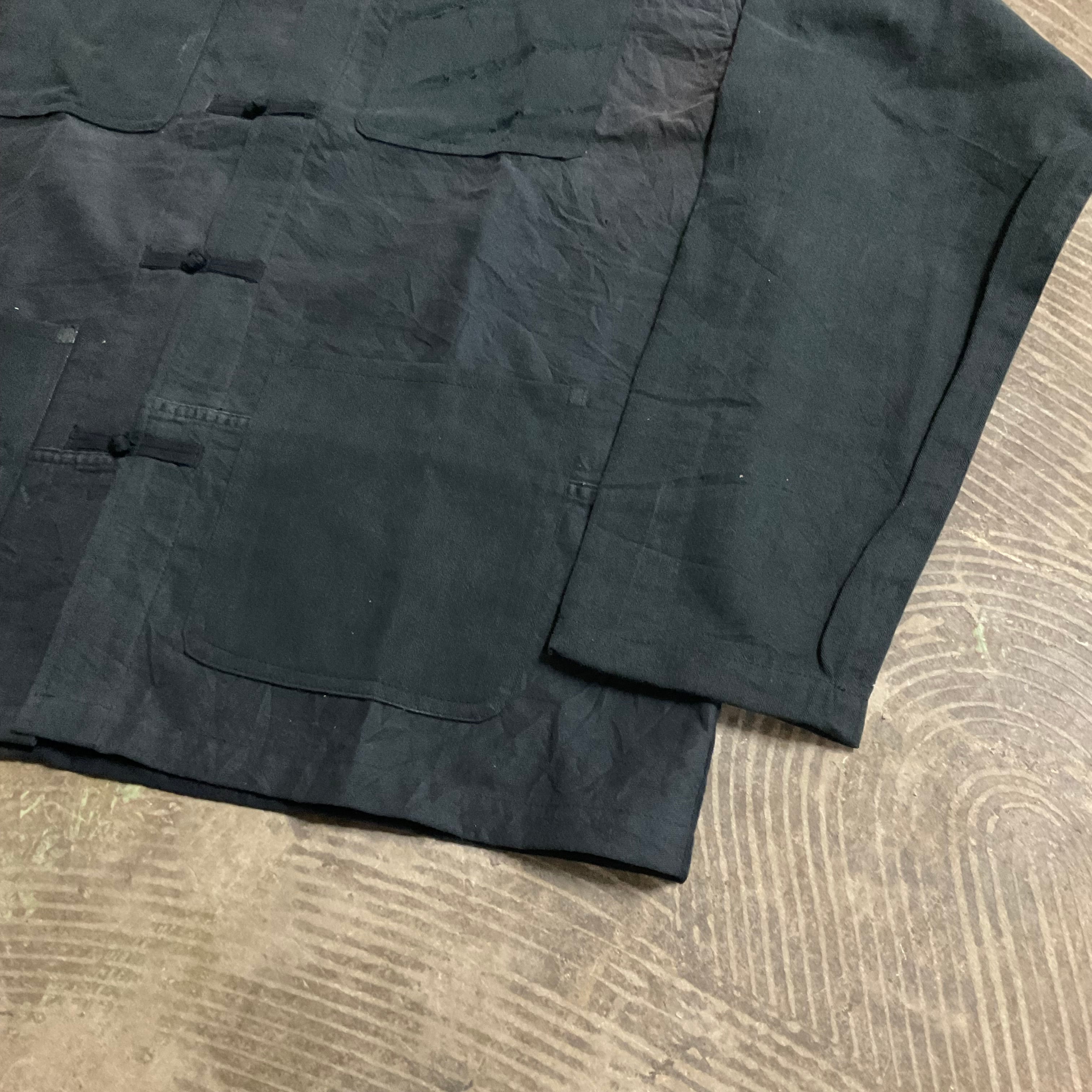 随所に施されたダメージと、チャイナボタンデザインを掛け合わせた、存在感のある一着。
