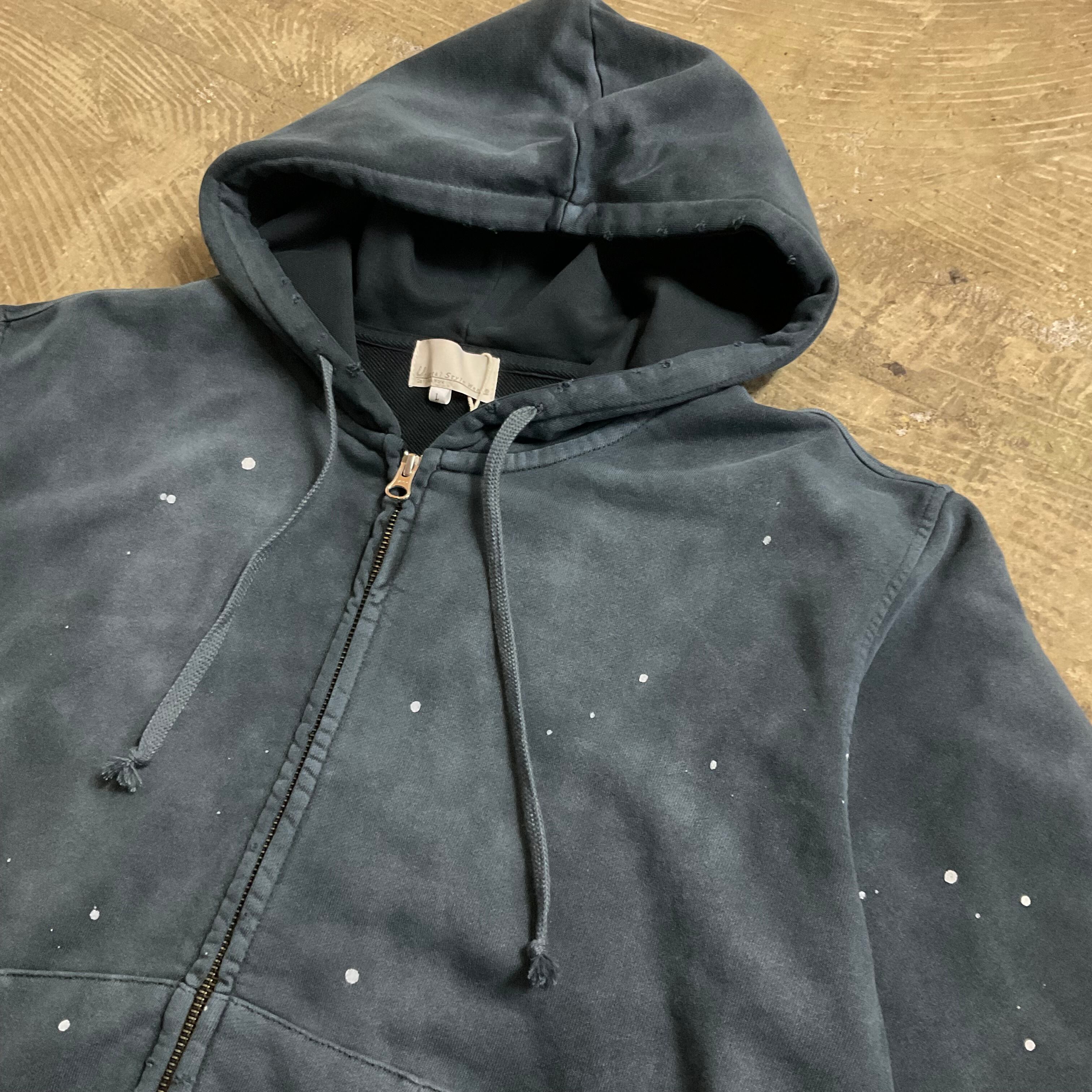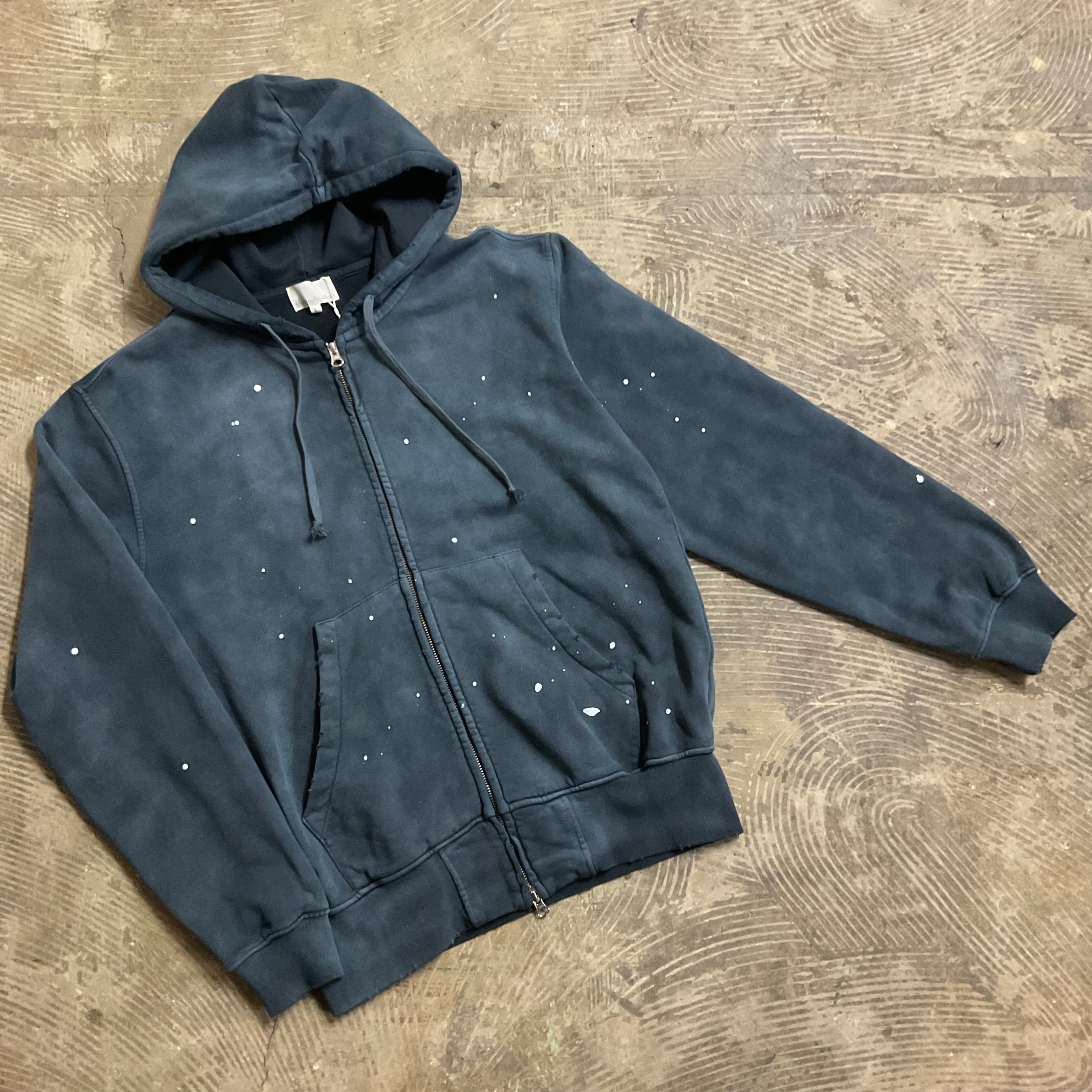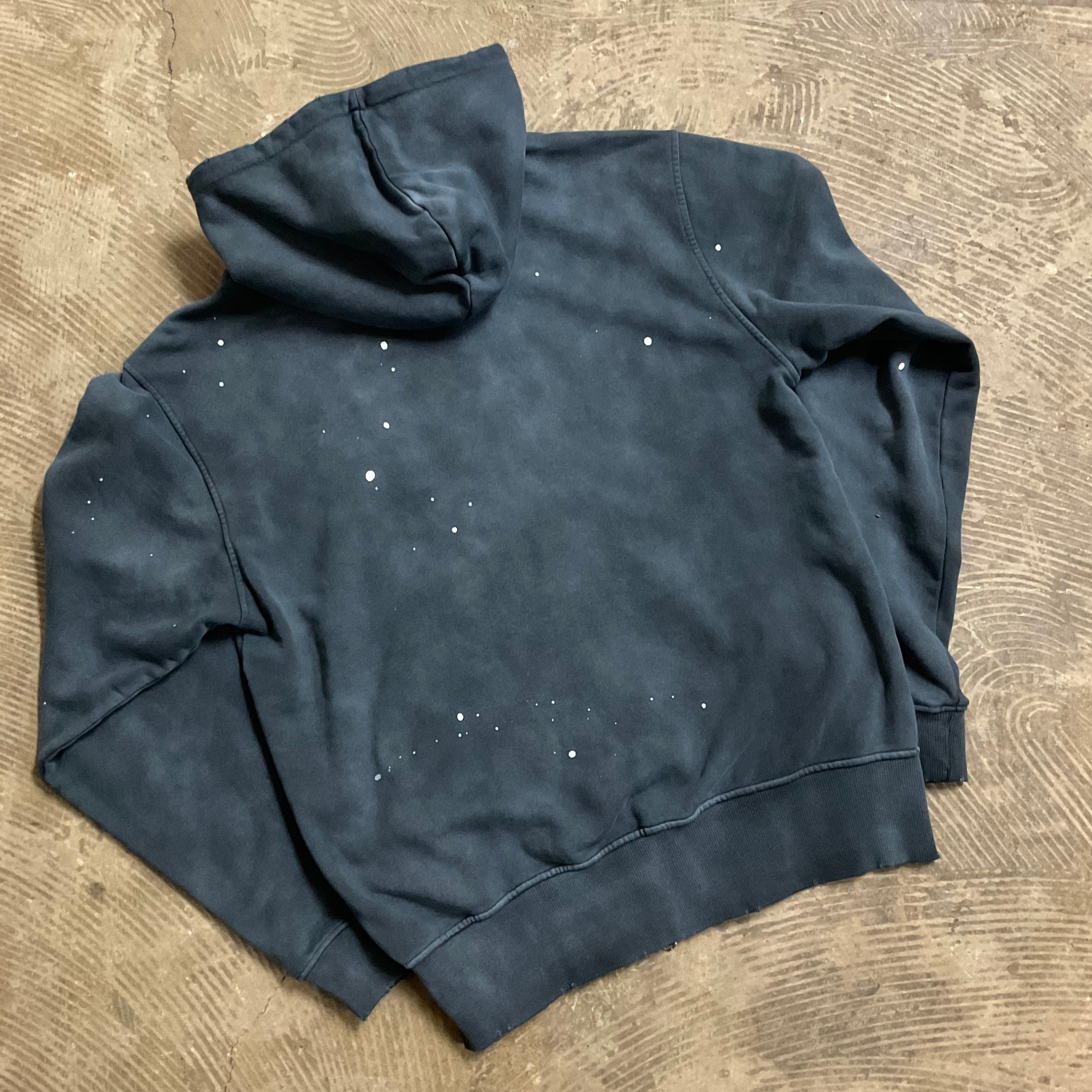 ビンテージライクなフェード加工を施したスウェットフーディー。
